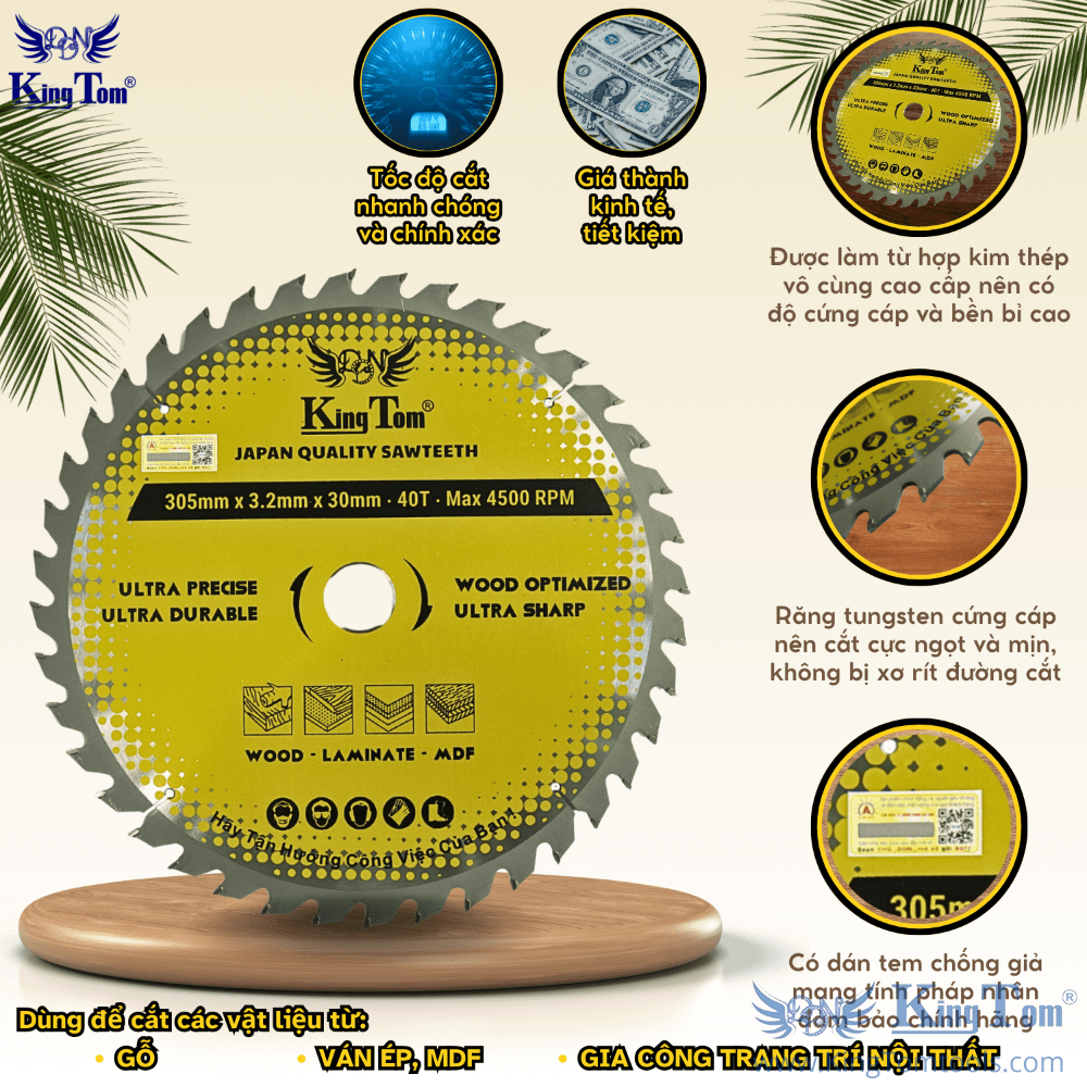 KingTom Gold Wood Saw Blade 100-30 Teeth made of good materials and automatic production line. Therefore, the cutting edge provides sharp, aesthetic cuts that help improve work efficiency.