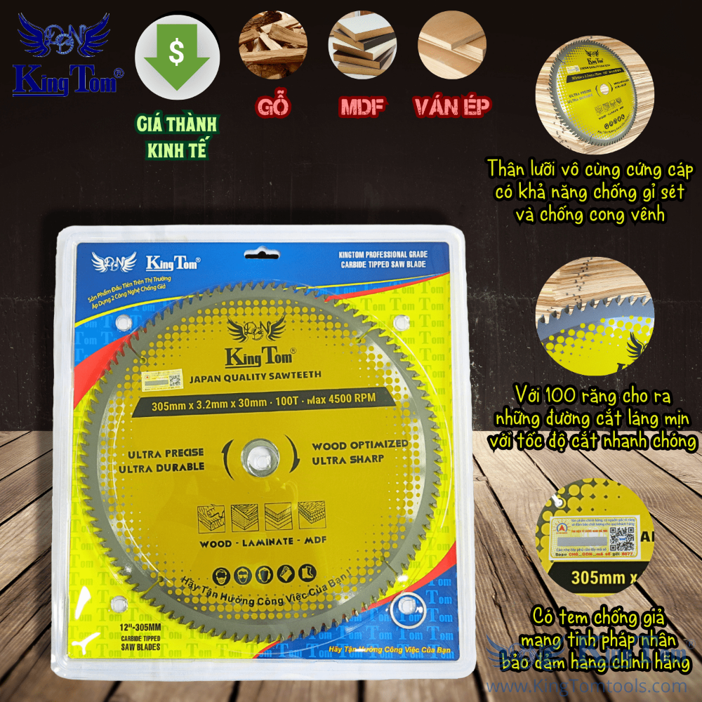 Lưỡi Cắt Gỗ 305-100 Răng KingTom Vàng với thiết kế tinh tế từ mẫu mã cho tới từng chi tiết nhỏ trên đĩa cắt đều rất tỉ mỉ và đẹp mắt.
